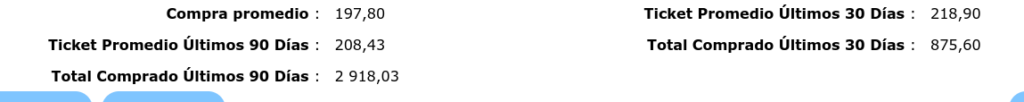 - Ticket promedio 30 y 90 días: La compra o el ticket promedio del cliente en los últimos días.