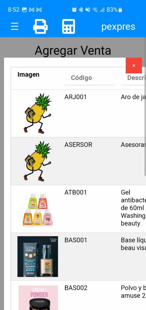 Ajustes en la interfaz de búsqueda de producto por descripción en móviles
